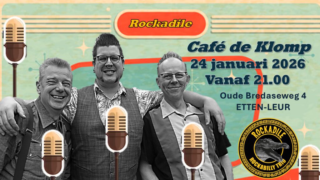 De toegang? Helemaal gratis, dus er is geen excuus om thuis te blijven! Kom genieten van strakke drums, swingende contrabas en gierende gitaren. Of je nu een doorgewinterde fan bent of gewoon zin hebt in een avond vol energie, dit is jouw kans. De sfeer wordt warm, de muziek authentiek en de dansvloer wacht op jou. Neem je vrienden mee en beleef een avond die je niet snel vergeet. Rockadile on tour – mis het niet!