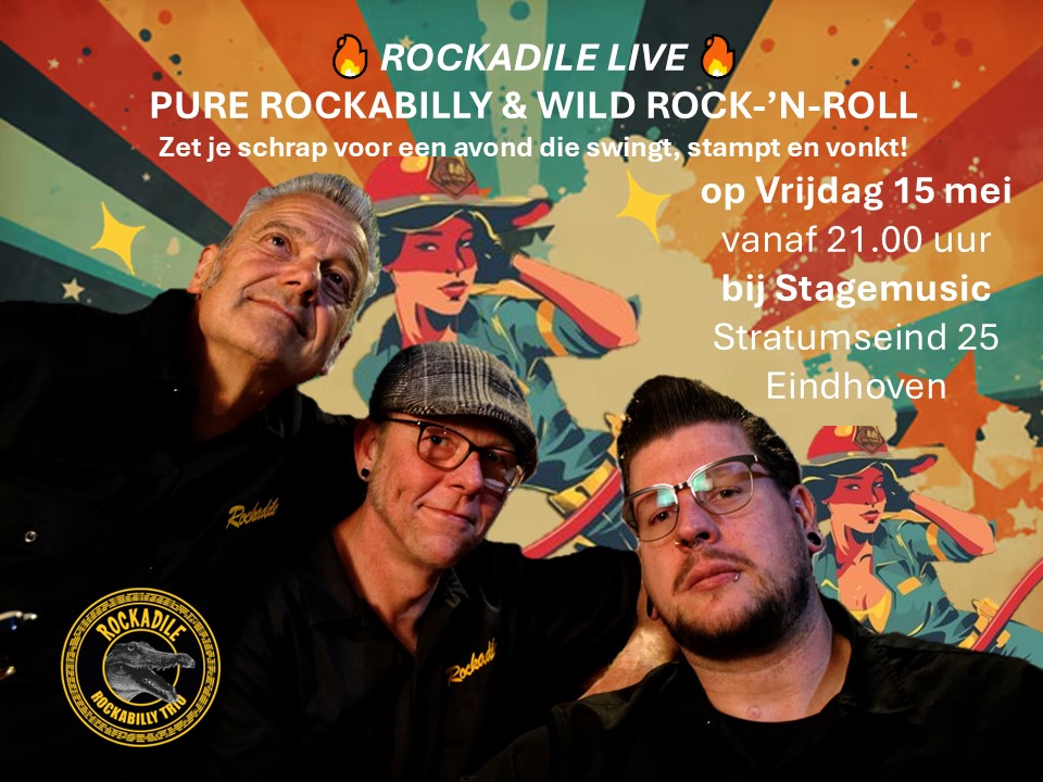 Rockadile komt naar Eindhoven! Op 15 mei 2026 staan we in het gezellige Stage Music Café, midden in het bruisende centrum.